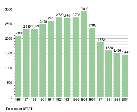 Население составляет 1505 человек (2008 г.), плотность населения составляет 22 чел./км². Занимает площадь 69 км². Почтовый индекс — 61040. Телефонный код — 0722.