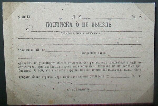 В уголовном процессе мера пресечения, которая означает обязательство подозреваемого или обвиняемого не отлучаться с места жительства (временного нахождения) без разрешения дознавателя, следователя, прокурора, суда. В случае нарушения подписки о невыезде, может быть применена более строгая мера пресечения, о чем должно быть объявлено при отобрании подписки.