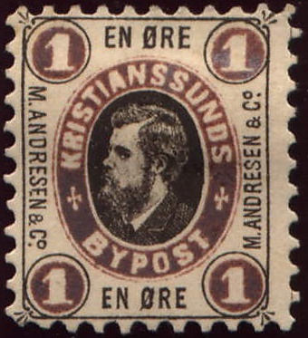 Местная почта Андресена в Кристиансунне была основана 1 сентября 1878 года. Первые марки, отпечатанные типографским способом на цветной бумаге, вышли в день открытия почты. На миниатюрах имелась надпись в зубчатой рамке «Chr.sunds Bypost / M. Andresen & Co.» и номинал. В октябре — декабре 1878 вышли три марки, отпечатанные литографским способом на белой бумаге, с изображением цифры номинала в овале и надписью «Christianssunds Bypost / M. Andresen & Co.». 1 октября 1879 года были эмитированы марки с изменённым написанием названия города — «Kristiansunds». А в декабре того же года серия из марок шести номиналов, отпечатанных литографским способом, с портретом Мадса Андресена. В октябре и декабре 1879 года издавались почтовые карточки. Местная почта Андресена закрылась в декабре 1879 года.[21]