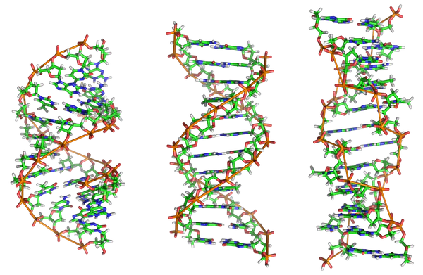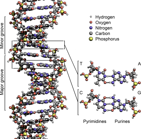 Нуклеотиды соединены между собой фосфодиэфирными связями, образуя полинуклеотидную цепь. Две такие цепи, ориентированные антипараллельно и закрученные вокруг общей оси, образуют двойную спираль ДНК.