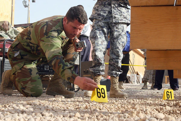 Сбор доказательств производится двумя способами: путем судебно-медицинской экспертизы и допроса. Для предотвращения перекрестного загрязнения все вещественные доказательства упаковываются в отдельные пакеты. В криминалистике используются различные инструменты и методы. Сбор отпечатков пальцев осуществляется путем нанесения на поверхность черного или серого магнитного порошка. ДНК и другие биологические материалы (волосы или жидкости) собираются для дальнейшего изучения в лаборатории. Отпечатки следов шин или следов обуви могут быть собраны при помощи гипса. Технический эксперт изымает электронику для экспертизы и дальнейшего поиска дополнительных улик. Документы с места преступления также изымаются для дальнейшего исследования. Боеприпасы и оружие берутся для сопоставления ранений и проведения баллистической экспертизы. Фотографии орудий, отмеченных как улики, берутся для дальнейшего сопоставления с орудием преступления. Также собираются любые другие трассеологические доказательства. Трасологические доказательства — это любые следы, которые могли быть оставлены преступником или могли указывать на него. Допрос свидетелей и жертв преступления проводится сотрудниками правоохранительных органов для того, чтобы получить информацию и составить хронологию событий.