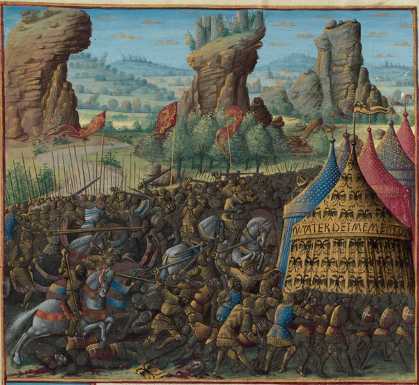 При Месуде в сельджукской армии были как пешие, так и конные отряды. В походе армия состояла из легковооружённых воинов, оружием которых были лук со стрелами, меч и копьё. При осаде городов и крепостей сельджуки использовали осадные орудия, например, катапульты[114]. О мастерстве лучников Месуда писали Иоанн Киннам и Никита Хониат. Даже в самых сложных условиях сельджукские воины могли поразить цель. Они использовали быстрых лошадей и были легко вооружены, чтобы маневрировать в битве и скрываться от преследования. В сельджукской армии были строгие порядок и дисциплина. Одним из тактических приёмов было изматывание сил противника внезапными набегами. Они прятались в высоких холмах и осыпали превосходящие силы крестоносцев и византийцев дождём стрел[115]. Ещё одним тактическим приёмом туркменов и особенно сельджуков, используемым наиболее часто, было ложное отступление. Небольшой отряд атаковал врага и, создав видимость своего поражения, отступал, заманивая преследующую вражескую армию в ловушку[116]. Управлять армией в бою помогали звуки барабанов и труб[117].