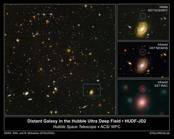 Самый удалённый от Земли наблюдаемый объект (известный на 2016 год), не считая реликтового излучения, — галактика, получившая обозначение GN-z11. Она имеет красное смещение z = 11,1, свет шёл от галактики 13,4 миллиарда лет, то есть она сформировалась менее чем через 400 миллионов лет после Большого взрыва. Вследствие расширения Вселенной, сопутствующее расстояние до галактики составляет около 32 миллиардов световых лет. GN-z11 в 25 раз меньше Млечного Пути по размеру и в 100 раз меньше по массе звёзд. Наблюдаемая скорость звездообразования оценочно в 20 раз превышает современную для Млечного Пути[20].