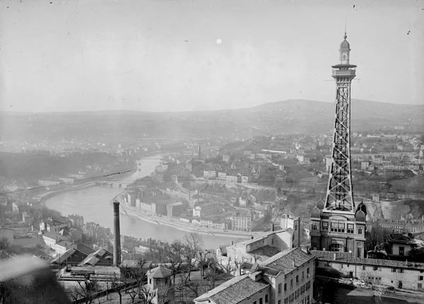 После успеха, который имела Эйфелева башня, построенная ко Всемирной выставке 1889 года в Париже, и в преддверии Всемирной, международной и колониальной выставки, намеченной на 1894 год в Лионе, в 1892 году местной предпринимательницей мадам Ге было основано акционерное общество, которое должно было воздвигнуть аналогичную металлическую башню в самой высокой точке города — на холме Фурвьер, на земле, принадлежавшей семье Ге. Вопреки расхожему мнению, архитектором башни на Фурвьере был не Гюстав Эйфель, а г-н Колле. Возведение башни было завершено в 1894 году[1].