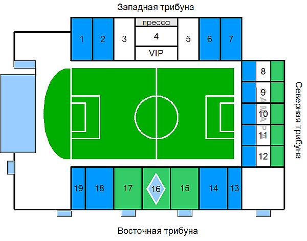 - Западная трибуна (1-7 сектора, VIP B) — 11 741