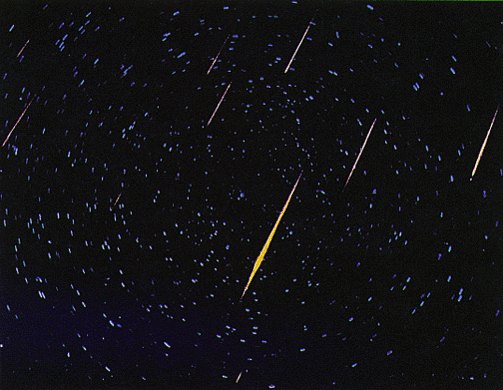 Метеорным или звёздным дождём называется метеорный поток с кратковременной очень высокой численностью метеоров (до тысячи и более в одну минуту). За последние 200 лет наблюдались следующие метеоритные дожди: Андромедиды (1872 и 1885 годы), Дракониды (1933 и 1946 годы) и Леониды (1799, 1833, 1866 и 1966 годы)[15].