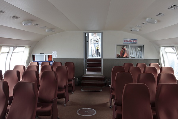 Пассажиры размещаются в трёх салонах, оборудованных мягкими креслами: носовом, среднем и кормовом — на 26, 44 и 44 места соответственно. Один из теплоходов — «Союз» — был экспериментально переделан в вариант с 50 каютами как в купейных пассажирских железнодорожных вагонах. Переход пассажиров из среднего в кормовой салон осуществляется по имеющей крышу палубе (на фотографиях видна как «горб»), с палубы двери ведут в туалет, машинное отделение и подсобное помещение. В среднем салоне находится буфет.