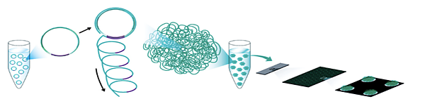 В данном методе в секвенируемый фрагмент ДНК последовательно вносятся 4 адаптера, благодаря которым в ходе дальнейшей репликации Phi29 ДНК-полимераза (rolling circle replication) синтезируемая молекула ДНК сворачивается в ДНК-наношарики. Затем наношарики наносятся на субстрат, имеющий многочисленные поля размером ~300 нм для связывания ДНК, организованные в виде решётки. Организация этих полей позволяет уместить больше ДНК на субстрат и увеличить плотность информации в изображении по сравнению со случайным нанесением ДНК на субстрат (например, как в полони-секвенировании)[23].