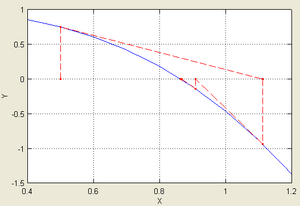 | Иллюстрация применения метода Ньютона к функции с начальным приближением в точке . | |
