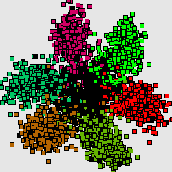 - Минимальна сумма искажений квадратов расстояний между всеми точками данных и их «центром тяжести». (Это означает, что максимальна сумма квадратов расстояний между проекциями и их центром тяжести.)