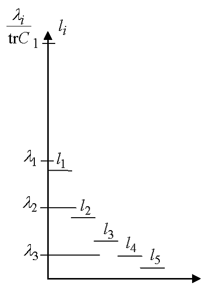 Замечание: в большинстве вычислительных алгоритмов собственные числа с соответствующими собственными векторами — главными компонентами вычисляются в порядке «от больших — к меньшим». Для вычисления достаточно вычислить первые собственных чисел и след эмпирической ковариационной матрицы , (сумму диагональных элементов , то есть дисперсий по осям). Тогда