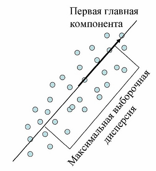 - найти подпространства меньшей размерности, в ортогональной проекции на которые разброс данных (то есть среднеквадратичное отклонение от среднего значения) максимален;