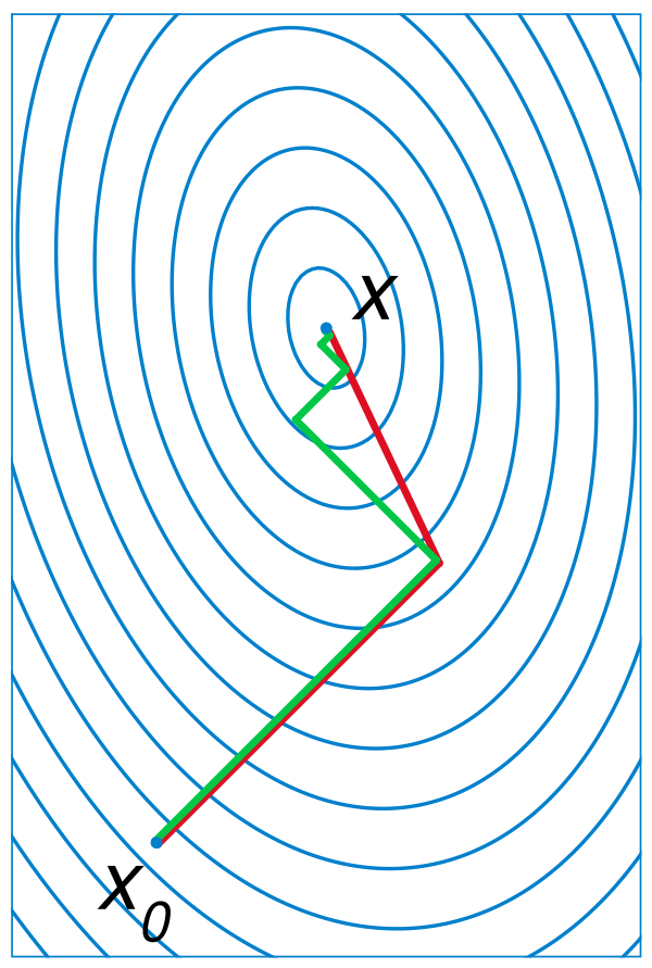 Пусть дана система линейных уравнений: . Причём матрица системы — это действительная матрица, обладающая следующими свойствами: , то есть это симметричная положительно определённая матрица. Тогда процесс решения СЛАУ можно представить как минимизацию следующего функционала: