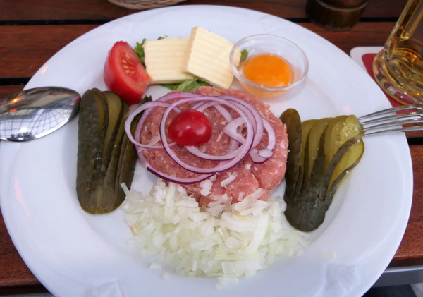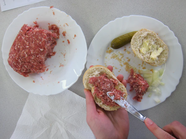 Свиной фарш высшего качества без сала с добавлением соли, репчатого лука, тмина и чёрного перца употребляется сырым в день приготовления[7][8]. В Германии считается, что жирность метта не должна превышать 35 %. Для того чтобы получить фарш лучшей консистенции, свинина перерабатывается в полузамороженном состоянии и, по правилам обработки, температура не должна превышать 2°С. Использование льда для охлаждения запрещено[9]. Потребление сырого мяса, в особенности рубленого, несёт опасность заражения патогенными бактериями, в частности иерсиниями, сальмонеллами, кишечной палочкой, кампилобактериями, листериями, а также паразитами и вирусами, но несмотря на это, немцы приучаются есть сырой фарш с раннего детства[10].
