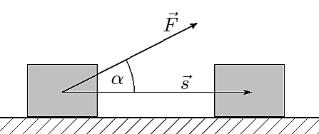 При прямолинейном движении материальной точки и постоянном значении приложенной к ней силы, работа (этой силы) равна произведению проекции вектора силы на направление движения и длины вектора перемещения, совершённого точкой: