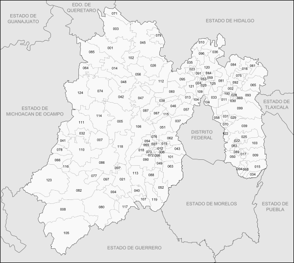 Не прекращавшаяся борьба между либералами (федералистами) и консерваторами (унитаристами) в XIX веке привела к серьёзным последствиям. Из территории штата были выделены области для будущих штатов Идальго, Морелос, Герреро. Во время американо-мексиканской войны, войска США оккупировали Толуку и Мехико, а правительство штата было вынуждено временно переехать в Сультепек.