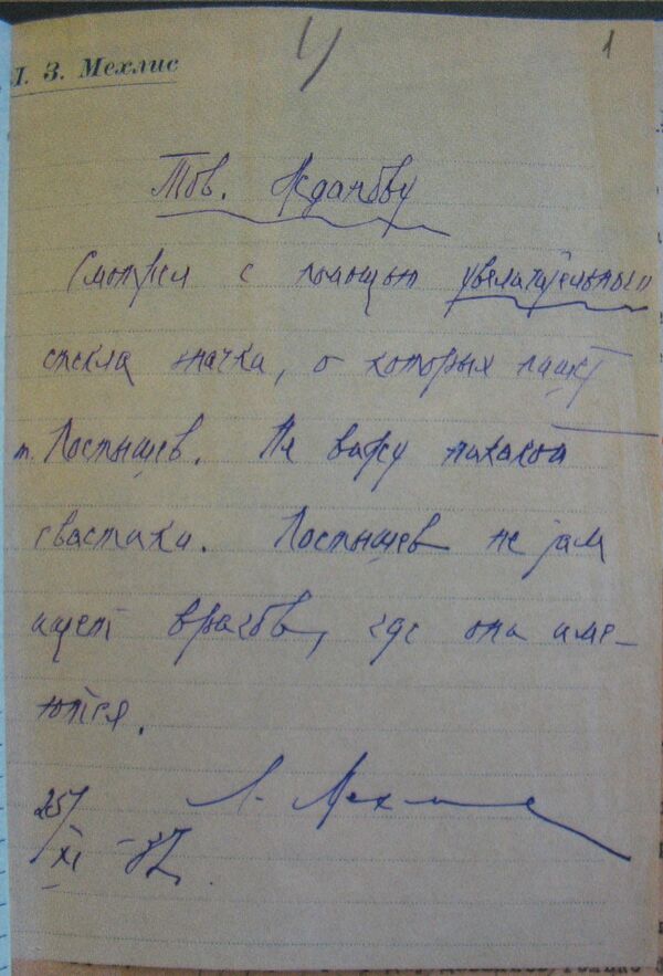 О том, как работал Л. З. Мехлис на Крымском фронте, говорят его телеграммы в Ставку. Через два дня после прибытия Л. З. Мехлис отправил И. В. Сталину телеграмму следующего содержания: