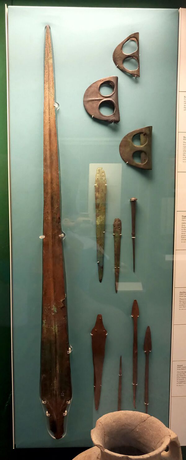 Меч из местечка Бет-Даган вблизи Яффы, датируемый 2400—2000 годами до н. э., имел длину порядка 1 метра и сделан из практически чистой меди с небольшой примесью мышьяка.