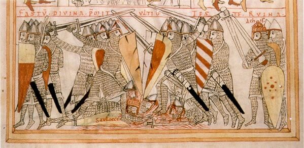 Также существуют археологические находки, которые косвенно свидетельствуют об остроте оружия. Раскопки останков погибших XV века выявили рубленные раны и отрубленные конечности. В братской могиле на месте битвы при Висбю (1361) найден скелет погибшего, обе ноги которого были отрублены одним ударом меча. Также известен череп с места битвы XI века, верхняя часть которого была полностью отсечена ударом меча, причём с ровными краями разреза, что говорит об остроте нанёсшего его оружия. Также в фехтовальных пособиях XV века существуют изображения, где мечом (примерно тип XVIII по типологии Окшотта) отрубают руку и голову, причём его передней тонкой частью. Если не считать, что автор преувеличил в рекламных целях, то данные изображения свидетельствуют о чрезвычайной остроте европейских прямых клинков.