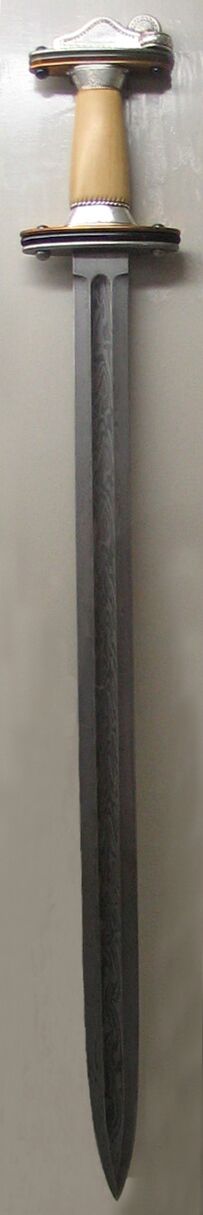 Контактное клинковое колющее и рубящее оружие с прямым средним или длинным массивным двухлезвийным клинком[4].