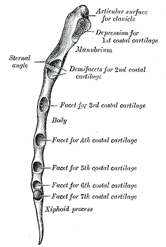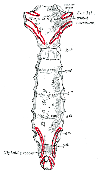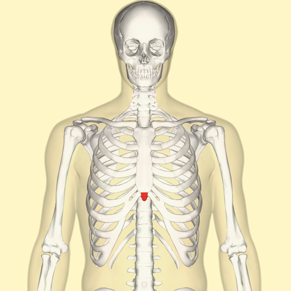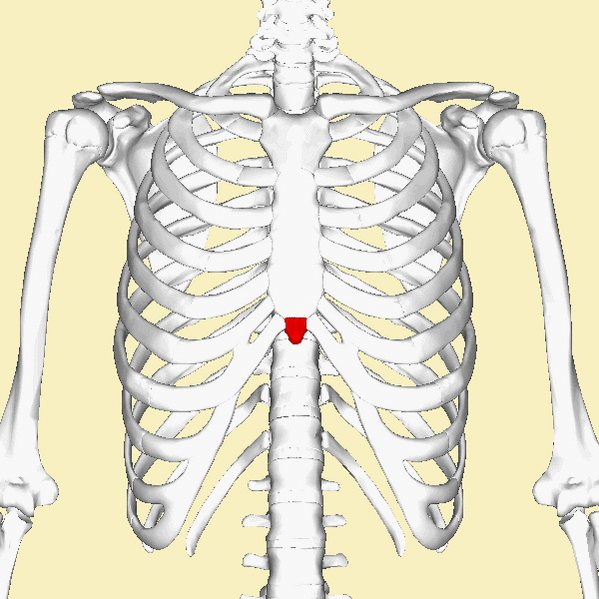 Мечевидный отросток (лат. processus xiphoideus) — самая короткая и узкая часть грудины, образующая её нижний, свободный конец. Форма и величина отростка сильно варьируется. Обращённый книзу конец, прощупываемый через кожу, может быть притуплён или заострён, вилообразно расщеплён или иметь расположенное посередине отверстие. У людей старческого возраста мечевидный отросток соединяется с телом грудины при помощи костной ткани.
