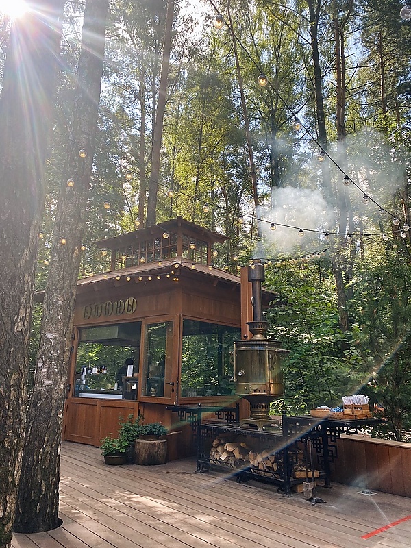 - «Лесная Чайная» — кафе для кофе-брейков после прогулок в лесу. Здесь наливают чай из самоваров, готовят фильтр и эспрессо, сезонные горячие и холодные напитки. В меню — завтраки, обеды, выпечка и блины