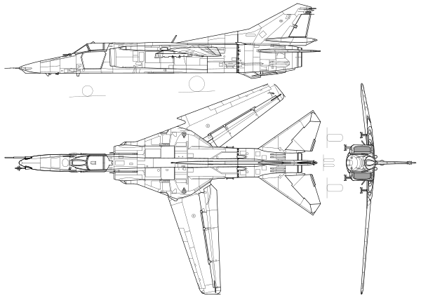 Самолёт выполнен по нормальной аэродинамической схеме с высокорасположенным крылом изменяемой стреловидности, цельноповоротным горизонтальным оперением и трёхопорным шасси[3].