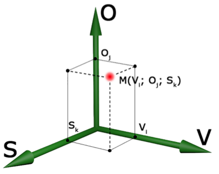 Для каждой точки пространства существует единственное значение из множества или оно отсутствует. Таким образом, — множество изменений состояния модели данных, представленных в многомерном пространстве. Для перехода между многомерным пространством и множеством значений точек вводится отношение :
