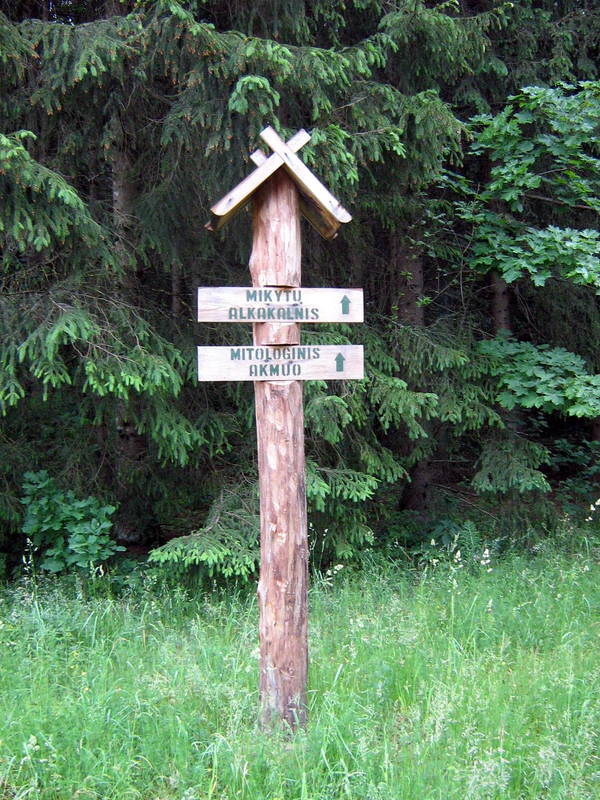 На северном склоне горы лежит огромный (4,5 x 2,5 x 4 м) камень с углублениями, по виду напоминающими ступню[1]. Легенда гласит, что чёрт разрушил храм на горе Алкос и, убегая, оставил эти следы на камне. Исследователи установили, что возраст камня составляет минимум 1,5 миллиарда лет, но, возможно, он даже старше. У его подножия с северной стороны находится место пересохшего родника — яма диаметром 2 м, которую до сих пор называют Молельным колодцем. Это название, вероятно, пришло из языческих времен.