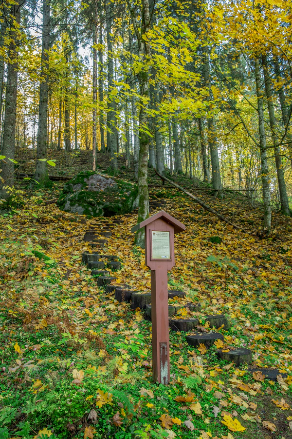 Рассказывают, что насыпали гору шведы, которые потом построили на ней храм и приносили жертвы богам, однако следов этого до наших дней не сохранилось.