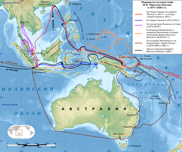 Сойдя со «Скобелева», Миклухо-Маклай на испанском пароходе переехал в Гонконг, чтобы ожидать там оказии до Сиднея. В Гонконге он узнал, что 4 мая 1883 года правительство Квинсленда собственным произволом объявило восточную Новую Гвинею своим владением и обратилось в Лондон за утверждением данной аннексии. Явно преувеличив своё влияние на ход событий, Николай Николаевич вообразил, что данная акция была спровоцирована рейсом «Скобелева» и возможным российским протекторатом над Новой Гвинеей[249]. Материалы австралийских архивов показывают, что правительство Квинсленда руководствовалось идеей обеспечения нормального судоходства в Торресовом проливе, а также предотвращения угрозы британским колониям в Австралии в случае захвата востока Новой Гвинеи какой-либо европейской державой. Хотя в официальных документах держава не называлась, но в австралийской прессе чаще всего упоминалась Германия. Страх перед Германией был силён в Австралии с 1882 года, после появления в ноябре того же года официального призыва присоединить Папуа — Новую Гвинею к германским владениям. В правительственном архиве Австралии в материалах по Новой Гвинее Миклухо-Маклай упоминается, но лишь как исследователь папуасов и борец против ввоза рабов-меланезийцев на плантации Квинсленда[250].