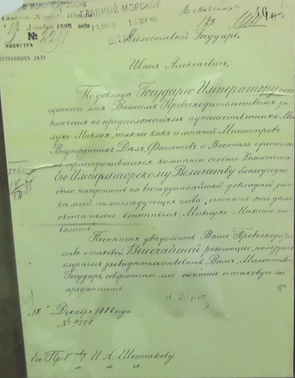 Переписка Н. Н. Миклухо-Маклая с императором и морскими властями