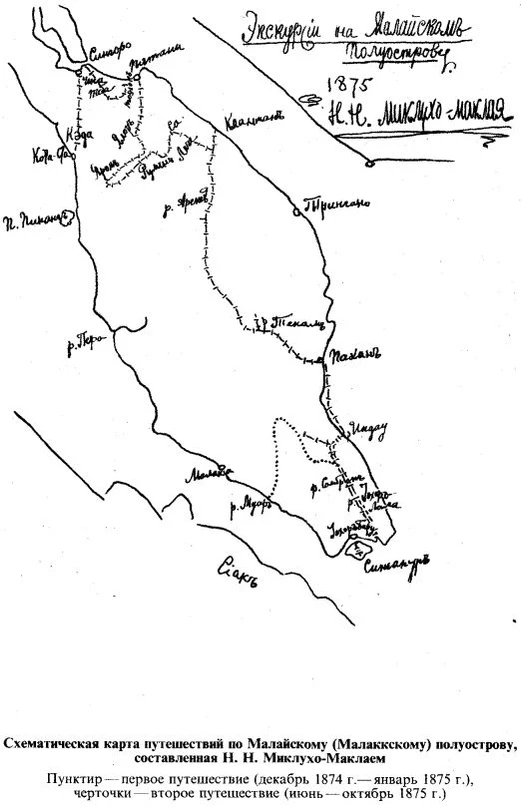 Наняв в Амбоне местных жителей-христиан, уже бывавших на Новой Гвинее, 23 февраля 1874 года Миклухо-Маклай отправился на остров. Он писал Мещерскому: