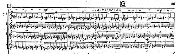 Суть и новаторство этой техники состоят в чрезвычайно сжатом расположении голосов по высоте. При этом партитура имеет структуру канона, однако голоса движутся в разных темпах и ритмических рисунках, слагаясь в плотные и непрерывно изменяющиеся кластеры.