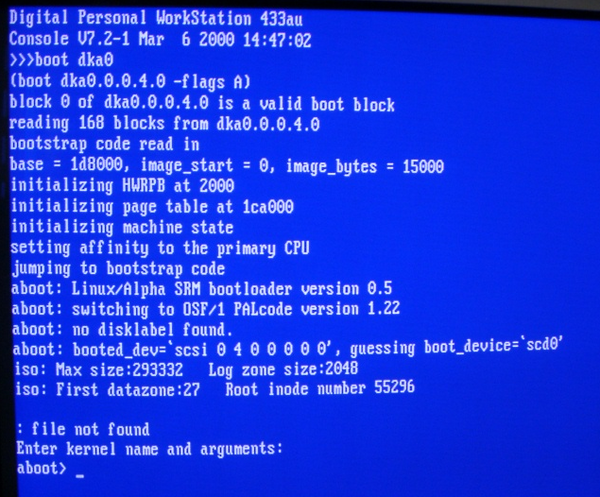 Digital Personal WorkStation 433u Console V7.2-1 Mar 6 2000 14:47:02 >>>