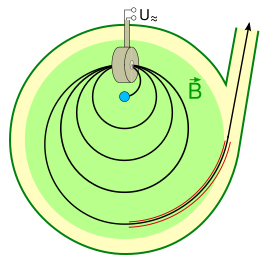 Классический микротрон, идея которого была предложена в 1944 году Векслером[1][2], представляет собой круглый дипольный магнит, но в отличие от циклотрона частицы инжектируются не в центре, а с краю, где установлены полые ускоряющие электроды. Далее частицы движутся по окружностям всё большего радиуса, получая на каждом обороте приращение энергии такое, чтобы новая частота обращения вновь была кратна частоте ВЧ-системы. Отметим, что такое изменение частоты обращения возможно только для ультрарелятивистских частиц (поэтому микротрон используется для лёгких частиц, электронов), в то время как в применяемом для нерелятивистских ионов циклотроне частота обращения не зависит от энергии. Ограничением энергии в микротроне служит размер электромагнита, создающего ведущее поле.