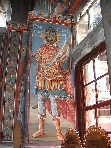 Милош Обилич — один из главных героев сербской легенды о Косове, ядром которой является битва на Косовом поле (1389). Согласно легенде, Милош и Вук Бранкович были женаты на дочерях сербского правителя Лазаря Хребеляновича. Между его женой и женой Вука Бранковича, произошла ссора о превосходстве в доблести их мужей. В результате этого Бранкович и Милош сразились и Милош победил. Преисполнившись ненавистью, Бранкович оговорил Милоша перед Лазарем, сказав, что Милош сговорился с турками, чтобы предать князя. Вечером накануне битвы Лазарь бросил Милошу в лицо обвинение в предательстве. Чтобы доказать свою лояльность, Милош пошел в турецкий лагерь, притворяясь перебежчиком. В благоприятный момент он заколол султана Мурада, после чего его охранники казнили Милоша. Затем в легенде описываются события, касающиеся битвы[37].