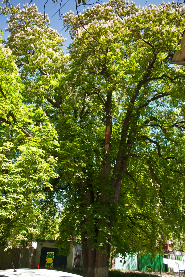 Хозяин дома Фёдор Карлович, его жена и две дочери любили свой сад, который граничил со смежными владениями графини Нарышкиной, Х. Х. Стевена и Ф. А. Дессера. Ю. Н. Бартенев в своём дневнике описывал сад Мильгаузена: «Сад у него на пятидесяти десятинах, плодовые деревья насажены у него в симметрическом, кажется в четырёхсаженном расстоянии. Новый сад засадил сам хозяин, фрукты с него поступают в продажу, а перед домом его есть садик… Есть и другой сад, там водяная мельница. В этом саду деревья старые: я видел величественную осокорь, видел белый тополь, видел вишни колоссальной величины и толщины». От этого сада до нашего времени дожило уникальное дерево — уникальный пятиствольный каштан, который был посажен Ф. К. Мильгаузеном в 1829 году в качестве мемориального семейного дерева. В 1972 году решением Крымского Облисполкома «Пятиствольный каштан» был объявлен памятником природы.