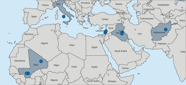 - Тренировочная миссия НАТО-Ирак: февраль 2005—ноябрь 2011; октябрь 2010—доныне; совместное обучение стран-участниц НАТО, вооруженных сил Ирака и стран-партнеров.
