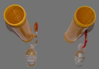 Крупный (и основной) недостаток газодинамической схемы воспламенения в том, что газовая струя оказывает динамическое воздействие лишь на весьма небольшом расстоянии от сопла и следовательно — даже значительное увеличение метательного заряда не может дать существенного увеличения дальности стрельбы. Расширение сопла также имеет свои пределы. Тем не менее, эта схема нашла определённое применение в артиллерийских системах ближнего боя, где не требуется большой дальности огня — в том числе и в миномётах[122]; - Схема воспламенения типа Стокса. В настоящее время имеет наиболее широкое распространение применительно к миномётам. При данной схеме воспламенение и горение основного метательного заряда происходит в замкнутом объёме (трубке стабилизатора мины). Пороховые газы прорывают оболочку гильзы и вырываются с большой силой через соответствующие отверстия в пространство за миной. При этом газы, расширяясь, толкают мину вперёд. В случае применения дополнительных зарядов эти пороховые газы, вырываясь через отверстия, омывают дополнительные заряды и воспламеняют их. Причём воспламенение и горение происходят единообразно и быстро.