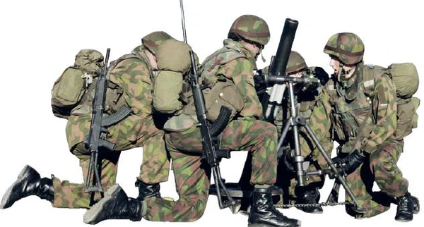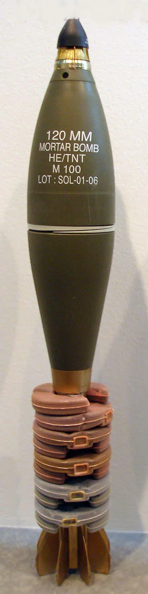 - 120-мм полковой миномёт образца 1955 года (М-120) /120 мм /302 м/с /320 кг /10 выстр./мин. /460-7170 м /16 кг (осколочно-фугасная мина)[87]