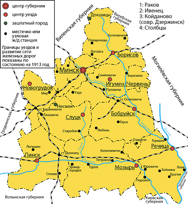 - Минская губерния. Список уездов, волостей, населённых пунктов