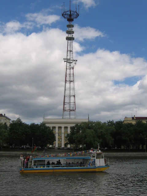 С 1 января 1956 г. с минской телебашни начала осуществляться трансляция Республиканской телевизионной студии. Радиус действия уверенного приема достигал 70 км.