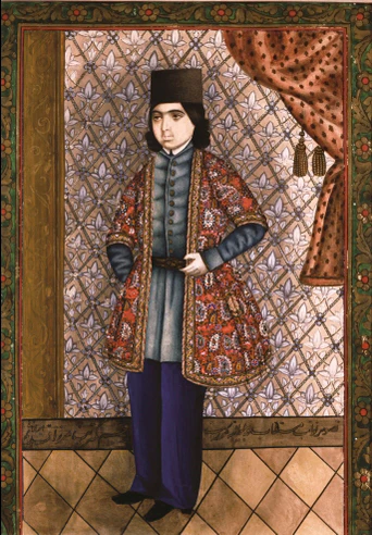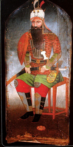 Портреты Фетх Али-шаха, Хусейн-хана Каджара и Рустам Зала[13] (слева направо), выполненные Эривани во дворце сардаров в Эривани. Государственный музей искусств Грузии, Тбилиси