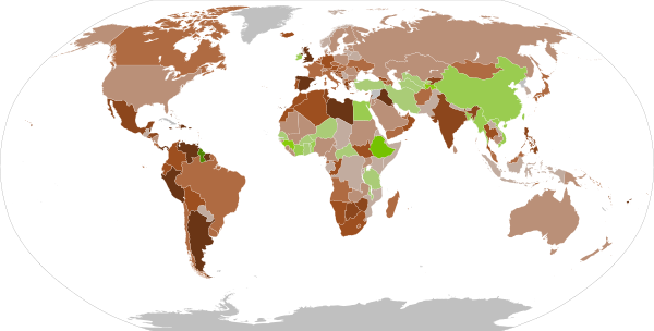 Поскольку правительства отреагировали на кризис принятием крупных пакетов стимулирующих мер, уровень задолженности в мире существенно возрос. Например, глобальный государственный долг достиг уровня около 100 % годового мирового производства. При этом в абсолютных числах развитые страны увеличили уровень своей задолженности больше, чем бедные, благодаря гораздо более масштабным пакетам стимулирующих мер, но приемлемый уровень задолженности в бедных странах ухудшился гораздо сильнее.[28]