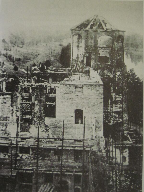 В середине столетия замок оказался под угрозой полного уничтожения. В 1860 году в газете «Виленский курьер» появилось письмо поэта Владислава Сырокомли, в котором сообщалось о планах разрушения памятника[89]. Но катастрофы удалось избежать, вскоре в той же газете появилось оправдательное письмо Матея Ямонта, генерального администратора владений Витгенштейна, в котором он заверял, что стен замка не коснулась и не коснётся кирка[90].