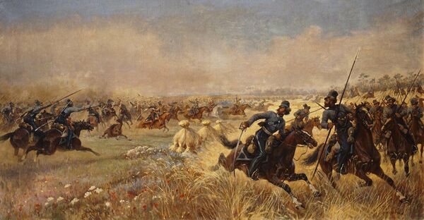 Под стенами замка 9-14 июля 1812 года происходили жестокие бои между арьергардом 2-й русской армии Багратиона — кавалерией генерала Платова и французской кавалерией маршала Даву[75]. Багратион приказал Платову задержать французов как можно дольше, чтобы дать основным силам передышку в Несвиже. Казакам генерала Платова с помощью конницы удалось задержать авангард французской армии, под командованием брата императора Жерома Бонапарта[79]. «Дело казаков Платова под Миром» стало первой серьёзной стычкой на поле боя в войне 1812 года, войска Багратиона два дня отдыхали под Несвижем и спокойно дошли до Слуцка. Битва под Миром была отражена в искусстве: киевский художник В. В. Мазуровский в 1912 году нарисовал картину «Дело казаков Платова под Миром», которая теперь находится в Музее-панораме «Бородинская битва»[80].