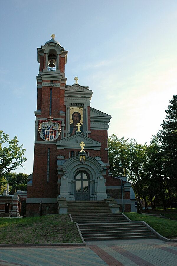 Домик сторожа был построен в начале XX века в одном стиле с часовней-усыпальницей Святополк-Мирских[180]. Постройка из красного кирпича и камней с бетонными вставками представляет собой небольшое квадратное в плане здание с тамбуром (3,5 на 2 м). Стены сторожки разделены горизонтальными тяжами и рустом. Въездные ворота созданы лучковой аркой, переброшенной от сторожки на квадратный столб[181]. В арке расположены кованые ворота. Над въездными воротами размещена икона Богородицы.