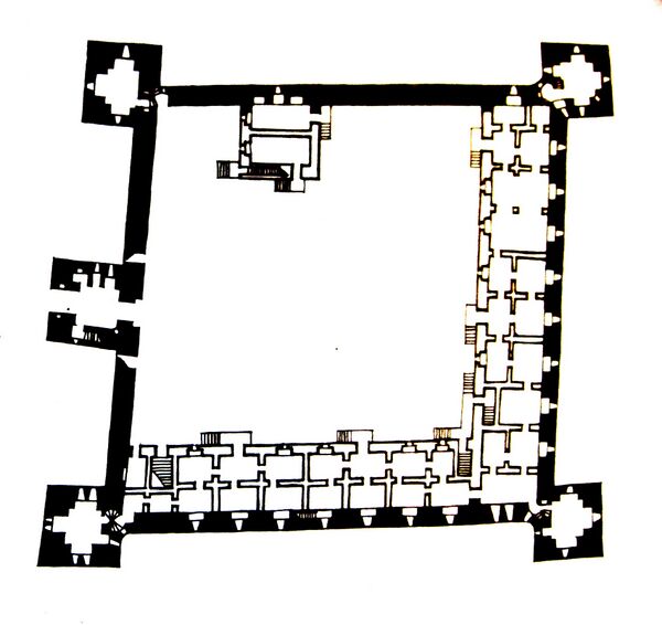 Второй этап строительства пришёлся на 1520—1530-е годы, когда к южной и восточной стенам пристроили одноэтажный корпус с широким подвалом[29], который занял почти половину площади двора[27].