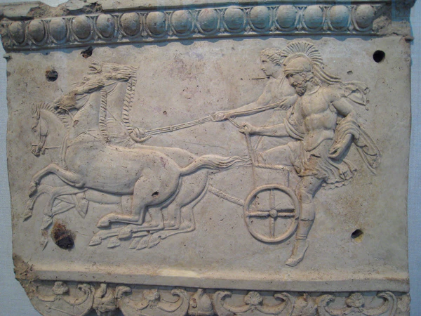 | Эномай и Миртил. Античный рельеф. Метрополитен-музей, Нью-Йорк, США | |